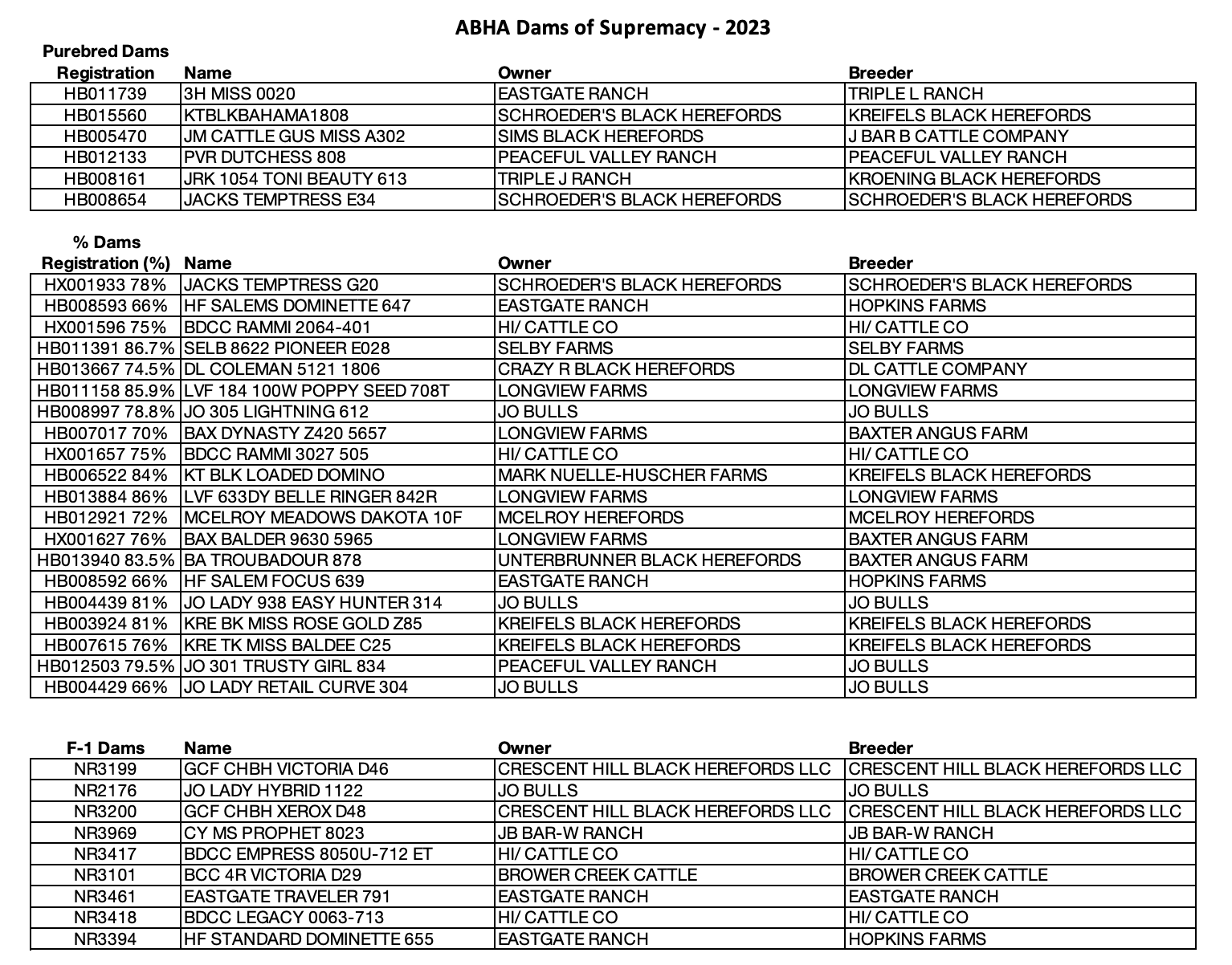 The ABHA recognizes outstanding Black Hereford animals and breeders that have impacted the breed.